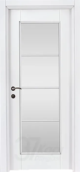 Uzun cam detayıyla daha aydınlık geçiş alanları için PVC kapı.